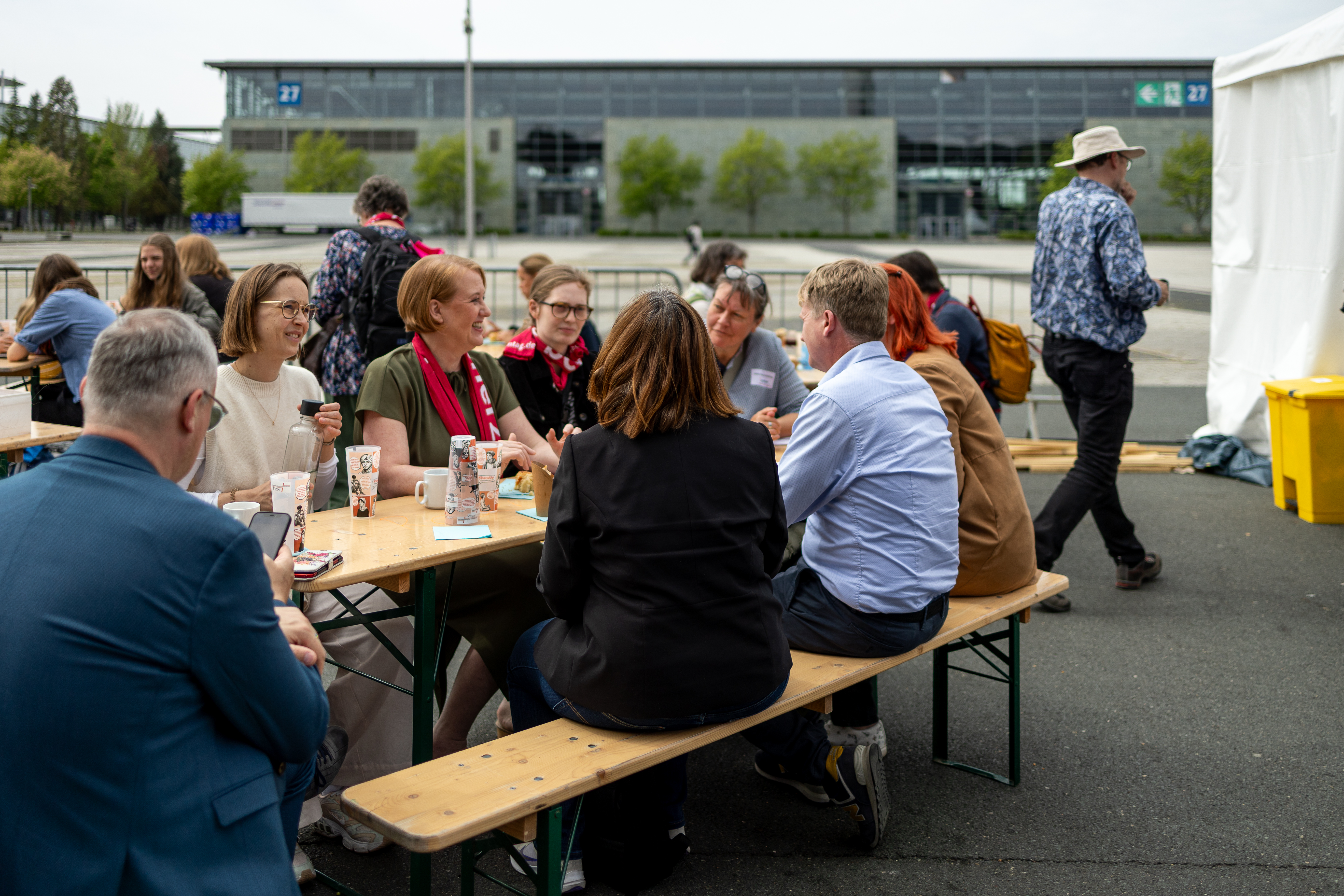 Genießen Sie heiße und kalte Getränke, leckere Snacks und frische Wraps – kommen Sie mit uns ins Gespräch und sammeln Sie neue Ideen für ein demokratisches Miteinander.